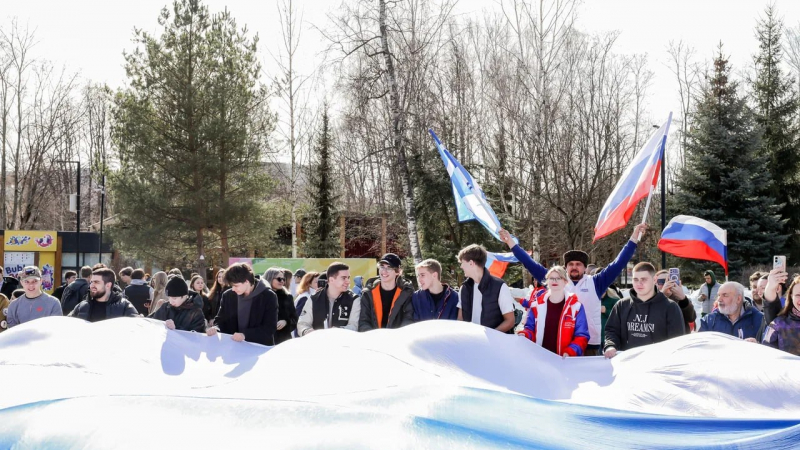 В Мытищах прошёл патриотический флешмоб ко Дню воссоединения Крыма с Россией