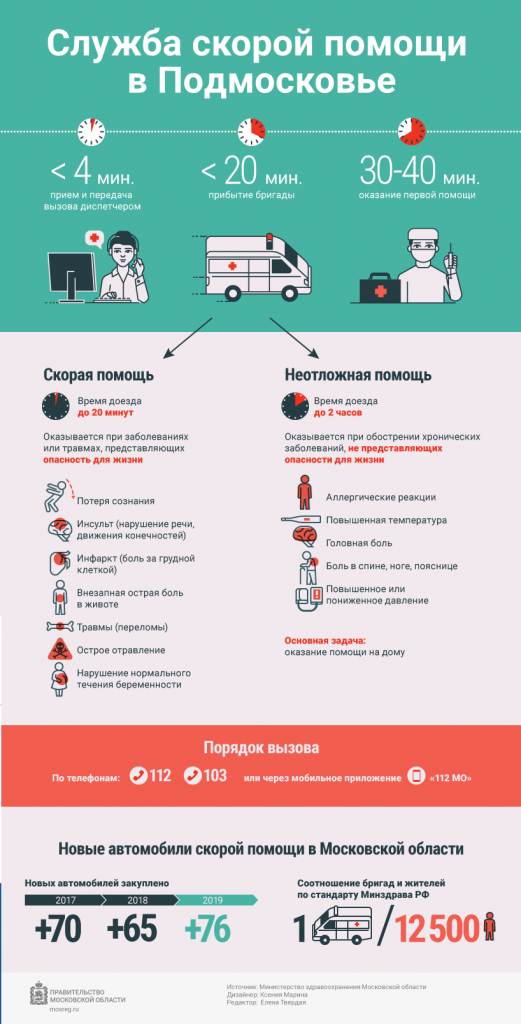 В службу скорой медицинской помощи Подмосковья ежедневно обращаются более шести тысяч человек. Около трети всех вызовов – экстренные.