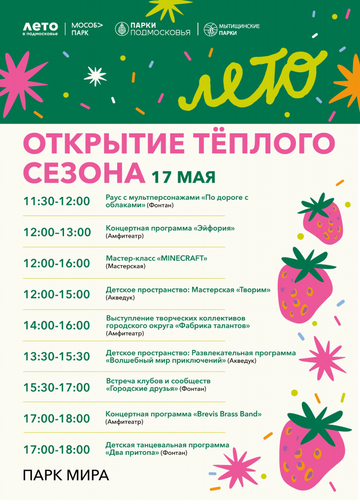 17 мая в парках ярко и весело открываем тёплый сезон!