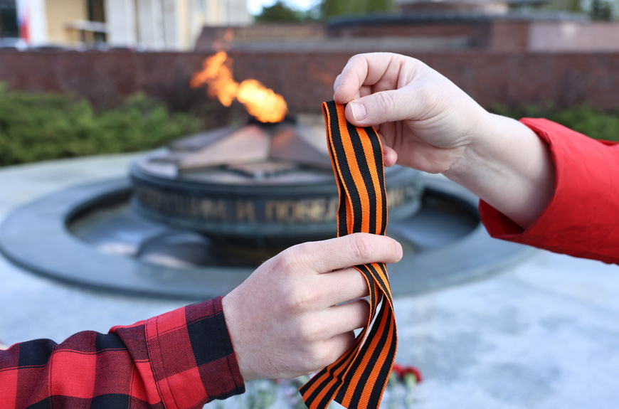 Ежедневно с 16.00 до 17.00 георгиевскую ленточку раздают члены объединений «Молодая гвардия» и «Волонтеры Подмосковья» и у фонтана в парке Мира.