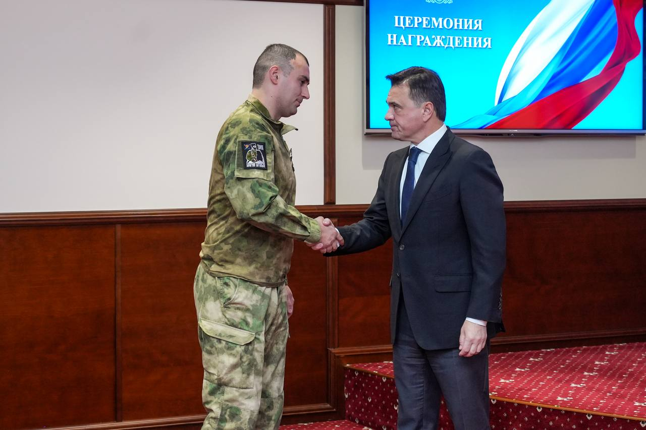 В правительстве Московской области состоялась церемония награждения добровольцев отряда БАРС. Губернатор Подмосковья Андрей Воробьев вручил медали «За храбрость» второй степени. Среди награждаемых – мытищинец с позывным «Пахарь». Он выполнял самые сложные боевые задачи в зоне СВО, имеет награды за проявленное мужество и самоотверженность. «Пахарь» в зоне СВО с октября 2022 года.