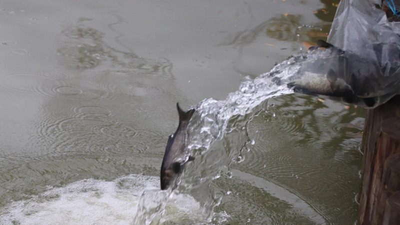 Более двухсот рыб запустили в Алексеевский пруд в Мытищах