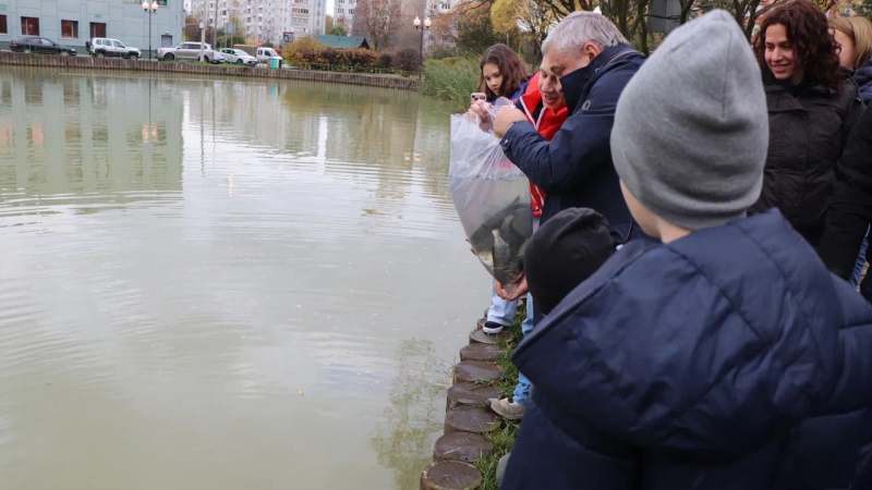 Директор управления экологии Алексей Королев сообщил, что в этот раз в пруд запущены три вида рыб: толстолобик, карп и вьюн. Толстолобик поможет очистить водоем от вредных микроэлементов, выделяющихся при цветении воды. Карп будет собирать органику со дна пруда, а вьюн добавит биоразнообразие.