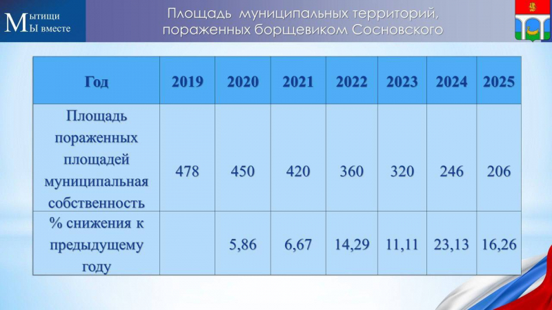 Ежедневный мониторинг за качеством проведённых работ, а также проведение необходимых мероприятий дало результат: за последние 6 лет снижение площади пораженных территорий Сосновского составило более 50%. В 2019 было поражено 478 гектаров, в 2025 эта цифра составляет 206 гектаров.