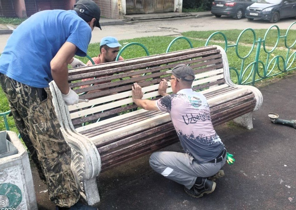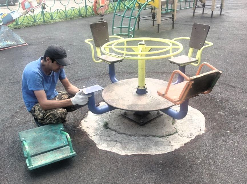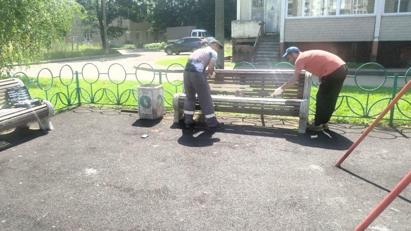 Лето – пора ремонта. Сотрудники коммунальных служб наводят порядок на вверенных им территориях. Покос травы, выпиловка сухостойных деревьев, ремонт и покраска малых архитектурных форм во дворах и отдельных элементов на детских и спортивных площадках.