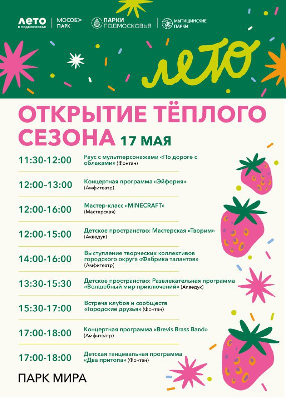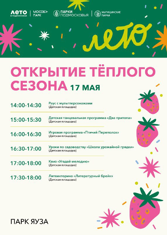 В эту субботу, 17 мая, в наших парках состоится открытие теплого сезона.