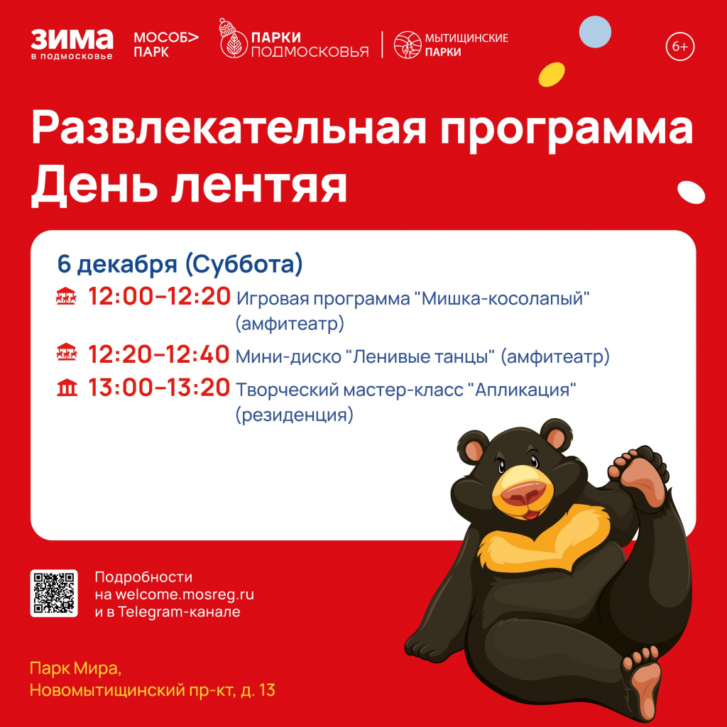 В субботу в 12:00 парк Мира приглашает на «День лентяя» — неспешные забавы и конкурсы для тех, кто любит отдыхать с фантазией.