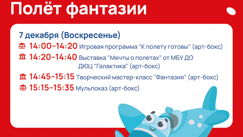 А в воскресенье в 14:00 в парке Ветеранов стартует развлекательная программа «Полет фантазии»! Детей ждут творческий мастер-класс, игровая программа, выставка и мультпоказ.