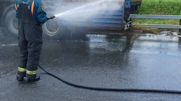 - Водитель допустил разлив на проезжую часть.