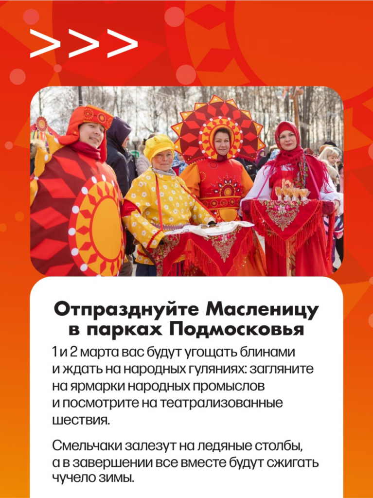 Приглашаем вас 1 и 2 марта на празднования и народные гуляния в парки Подмосковья.