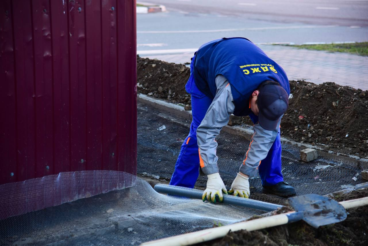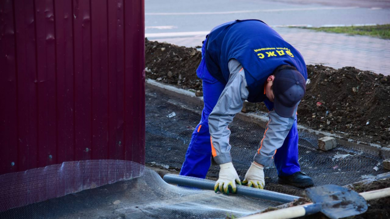 Укладка армированной антикрысиной сетки по периметру контейнерных площадок с последующим восстановлением газонов — это физическая мера, препятствующая повторному проникновению грызунов.