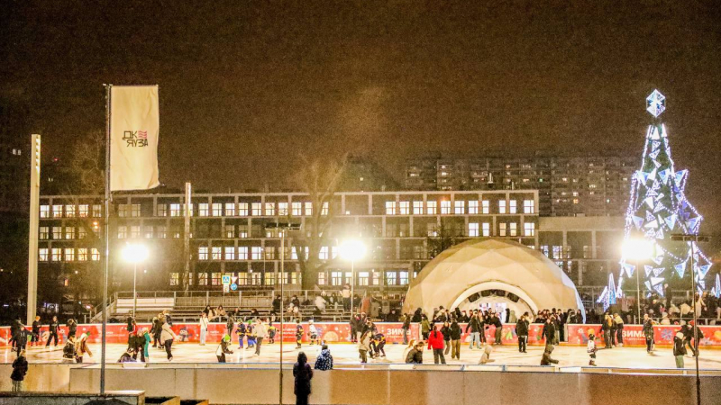 В первый день зимы ярко и дружно дали старт работе катка на площади ДК «Яуза»