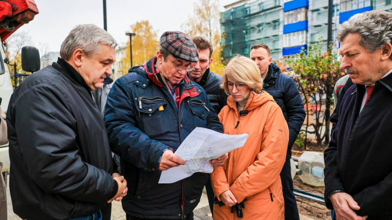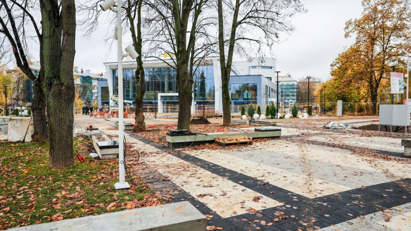 В сквере возле театра ведутся устройство уличного освещения и тротуаров, облицовка лавочек. На следующей неделе планируется высадка зеленых насаждений. Кроме того, подрядчик приступил к работам на парковке.