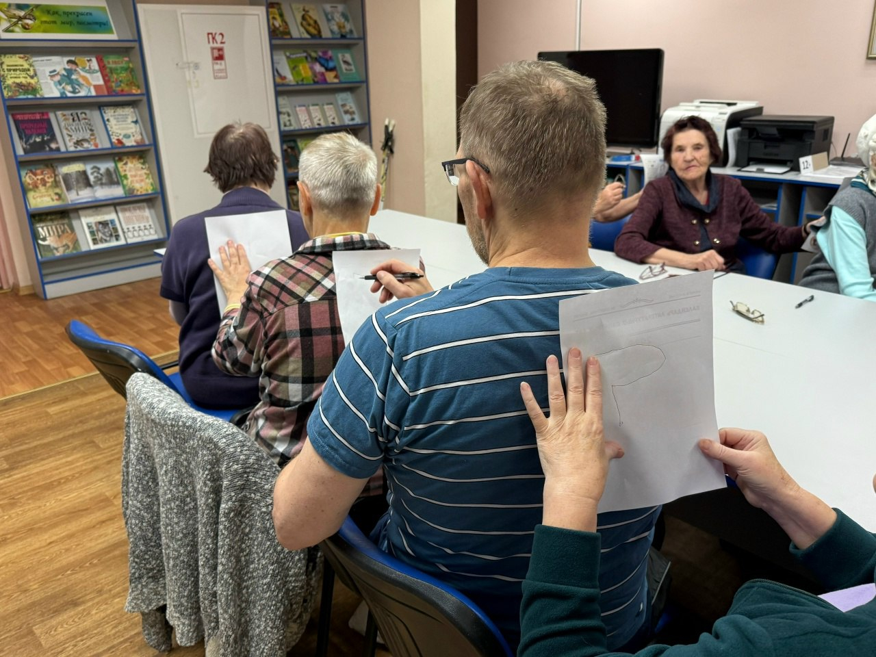Разминка началась с интересного задания: один из участников должен был «нарисовать» фигуру на спине другого, а тот — угадать, что это за фигура. Это задание оказалось сложнее, чем можно было предположить, и вызвало много смеха и улыбок. Оно помогло развить тактильное восприятие и укрепить дружеские связи между участниками.