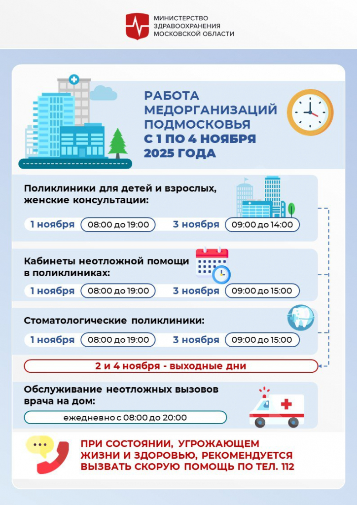 Как будут работать медучреждения Подмосковья в ноябрьские праздники