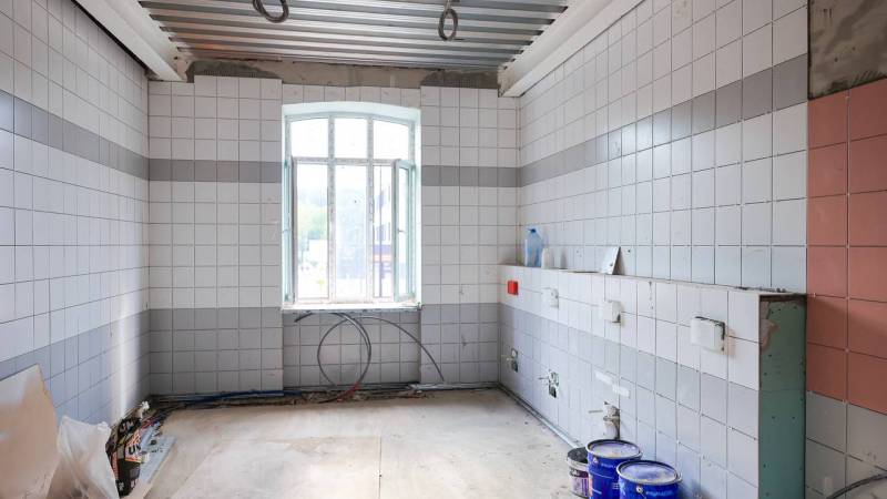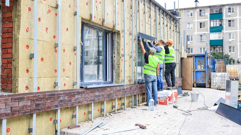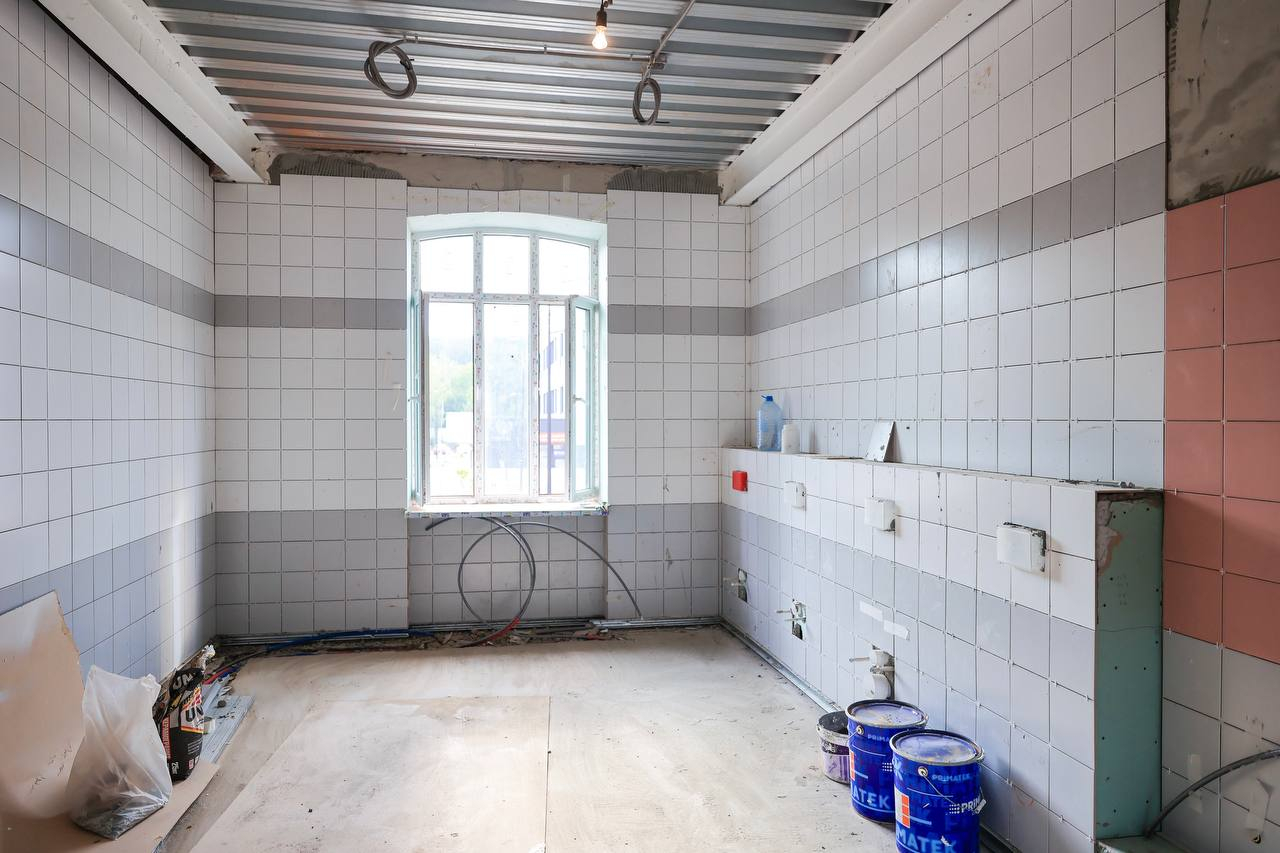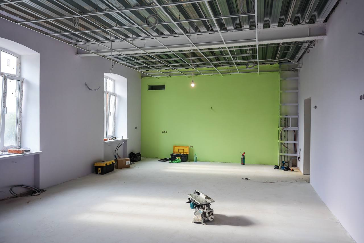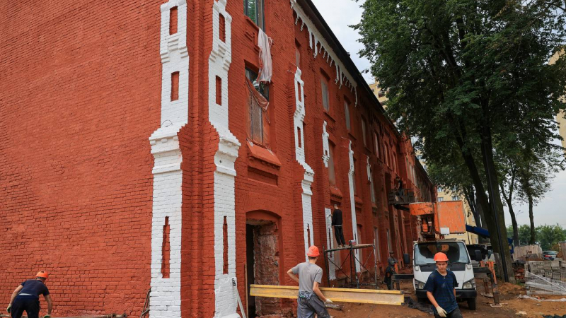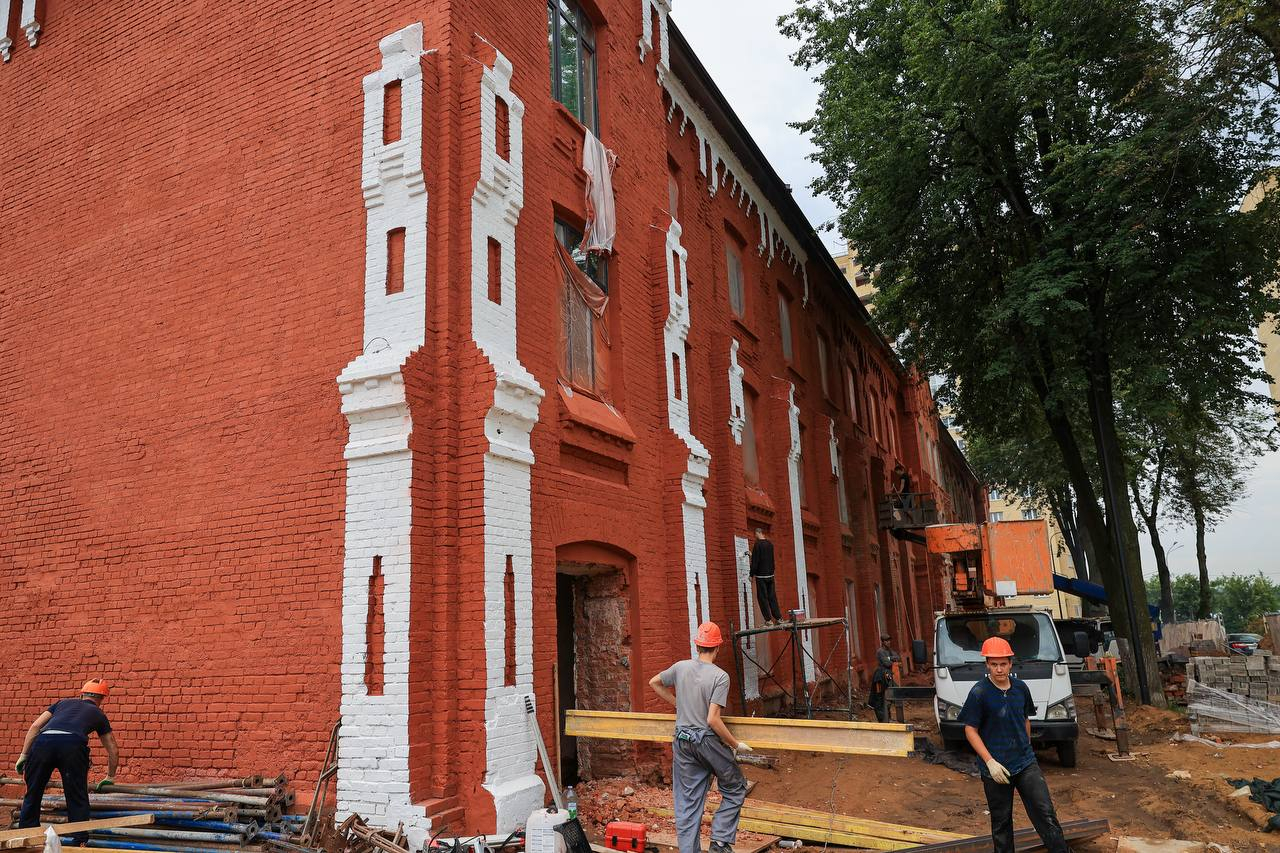 - Ведется покраска фасада. Внутри здания проводятся чистовая отделка, покраска стен и укладка линолеума в кабинетах, устройство напольной плитки в коридорах и санузлах. Завезено оборудование для пищеблока. Подрядчик приступает к пусконаладочным работам.