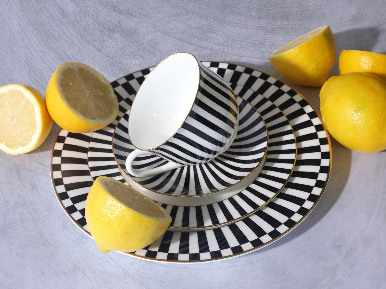 Когда наступает дождливая пора, самое время для неспешных завтраков и душевных вечеров в кругу близких. Создать идеальную атмосферу для таких моментов поможет коллекция «Да и нет» от заслуженного художника РФ Сергея Соколова. Её гениальная простота заключена в гармонии, которая актуальна в любое время года. Как в ясный день, ритмично чередуются сочные полосы: безупречная белизна костяного фарфора и магическая глубина чёрного. Этот дуэт одновременно создаёт умиротворенное и яркое настроение, словно сверкающие снежинки, танцующие в темноте.
