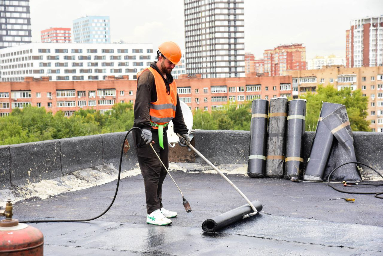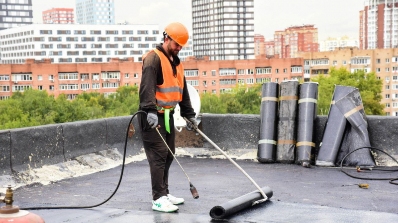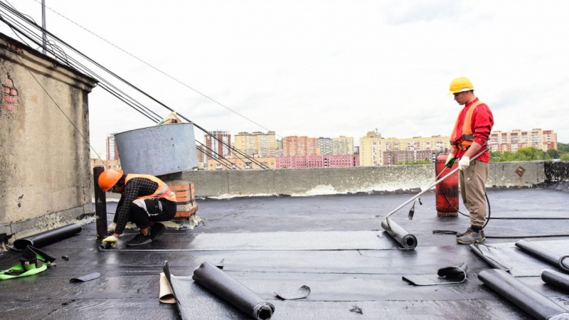 На улице Летной во втором корпусе дома № 16 подрядная организация ремонтирует кровлю. На текущий момент завершены работы по устройству стяжки, специалисты приступили к укладке верхнего слоя, после чего начнут монтаж парапетных крышек и проведут замену воронки внутреннего водостока.