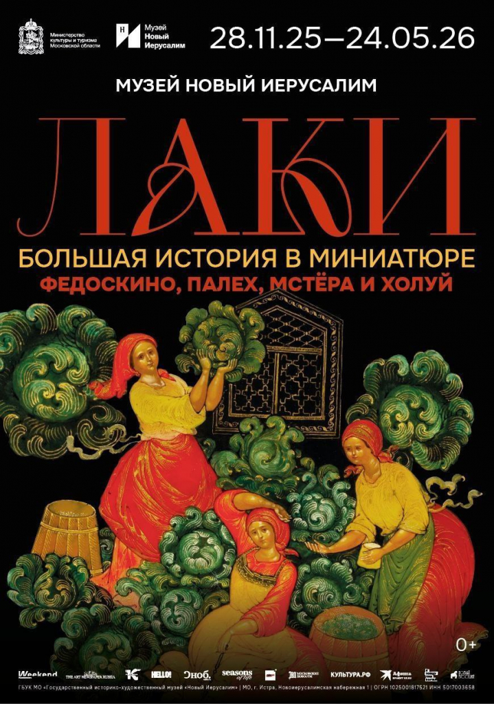 Выставка искусства лаковой миниатюры, приуроченная к 230‑летию юбилею федоскинского промысла, откроется 28 ноября в музее Новый Иерусалим. В экспозиции будет представлено порядка 300 произведений лаковой живописи из Федоскино, Палеха, Мстеры и Холуя.
