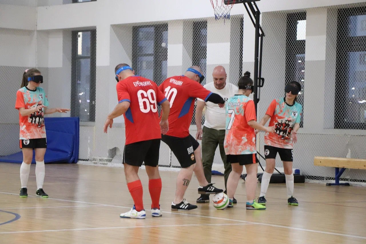 В разминочной игре с ветеранами команды «СОБР» девушки нисколько не смущались авторитета соперника и одержали заслуженную победу. Но главным событием футбольного вечера стала игра вслепую. В гости к «Мамазонкам» приехали чемпионы Европы по футболу среди тотально слепых – команда мытищинской спортивной школы «Авангард». После короткого инструктажа состоялся матч, который все участники провели в специальных очках, полностью исключающий визуальный контроль над мячом и полем. И здесь «мамазонки» не растерялись, довольно быстро приспособившись к непривычной ситуации. Такие встречи обязательно станут традиционными. Мытищинское футбольное сообщество тесно связано между собой.