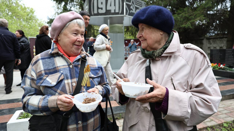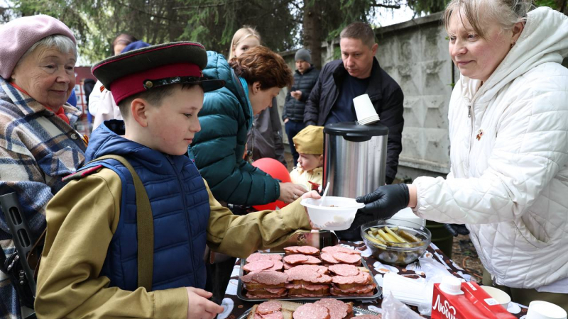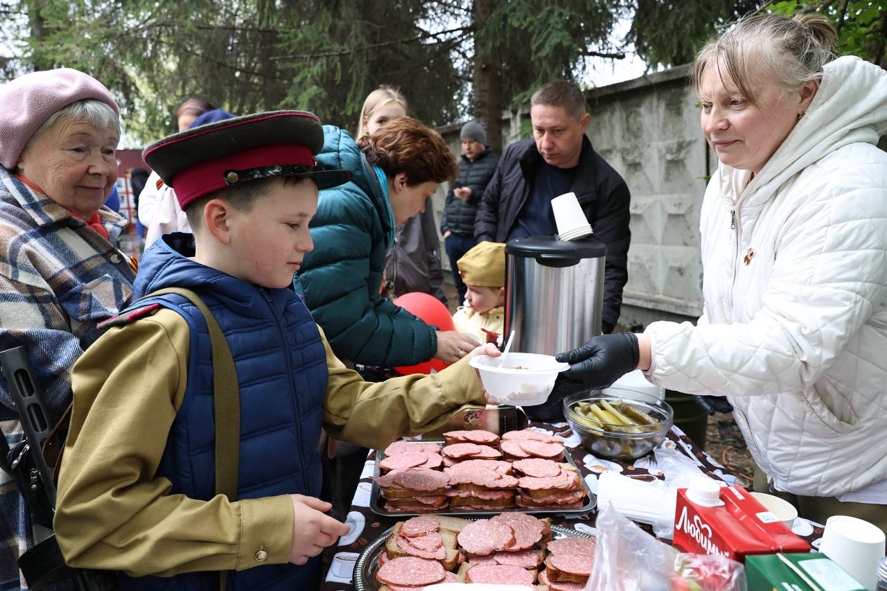 По окончании мероприятия всем предложили угоститься солдатской кашей с горячим чаем.