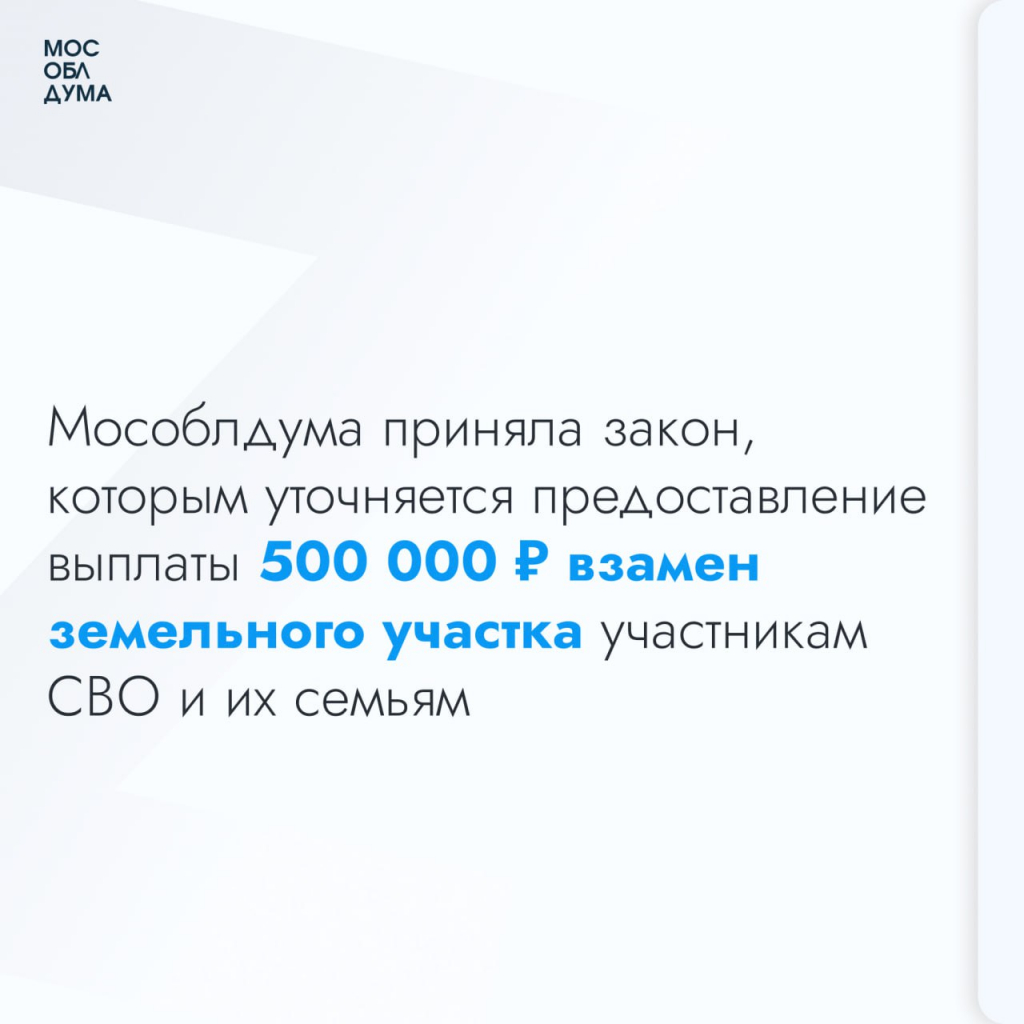 Мособлдума расширила категории получателей выплаты 500 тысяч рублей взамен земельного участка