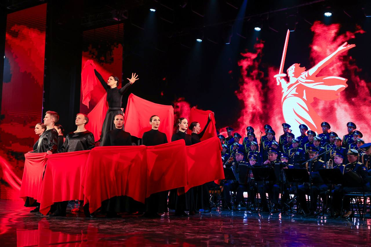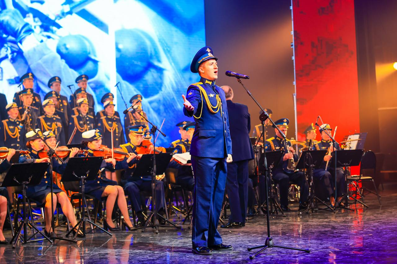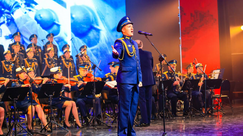 По традиции на сцене сегодня звучали лучшие песни о подвигах, героях, защитниках Отечества. Ансамбль песни и пляски Воздушно-космических сил подарил зрителям яркую программу.