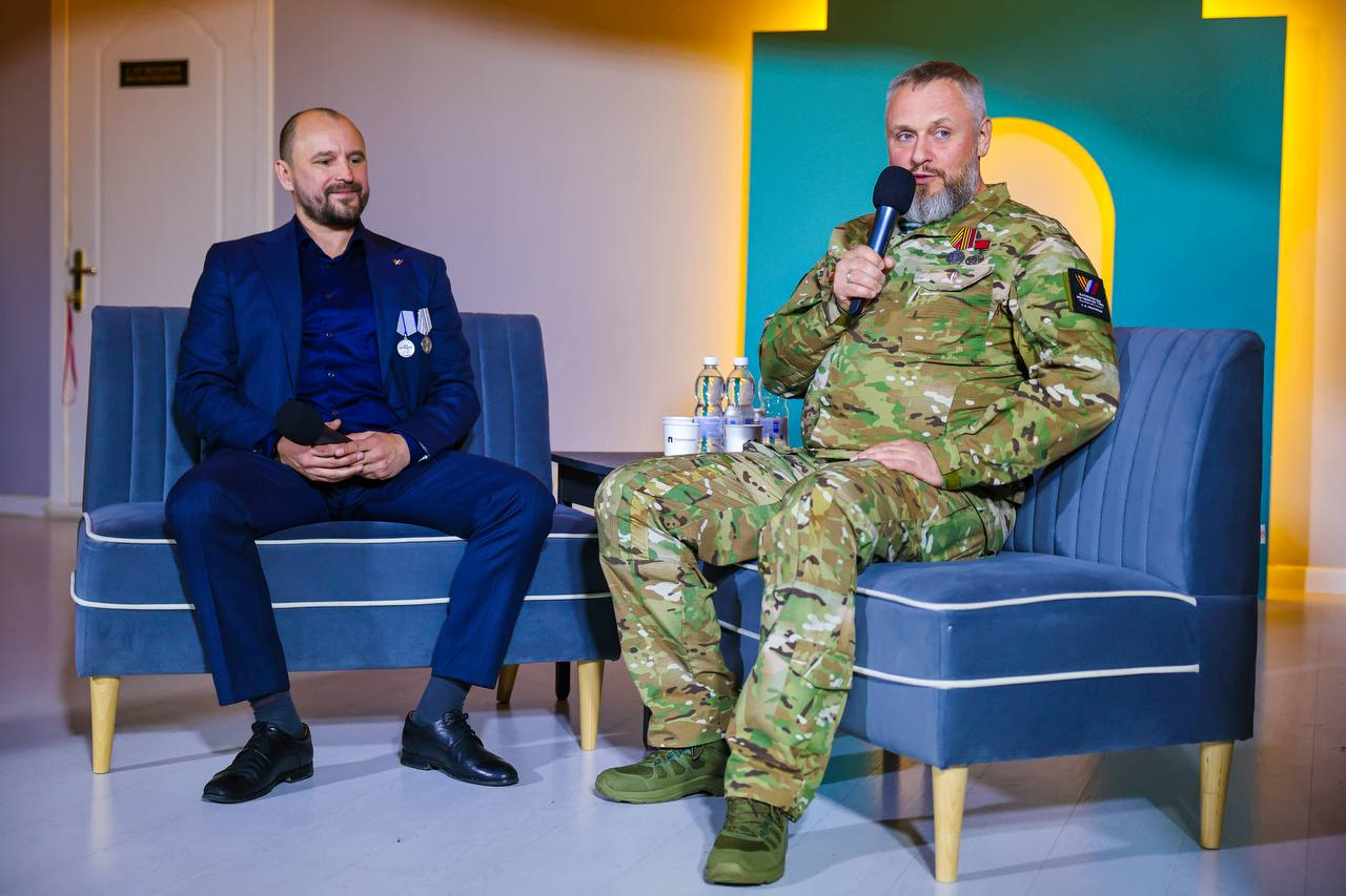 В преддверии Дня отца в центре культуры «Подмосковье» состоялась встреча школьников городского округа Мытищи с участниками специальной военной операции Сергеем Пудовым и Кириллом Прудниковым