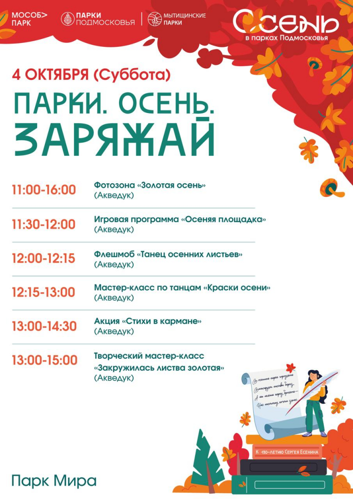 Любителей активного отдыха и ярких впечатлений приглашают Парк Мира и парк Ветеранов в субботу 4 октября. Для посетителей всех возрастов подготовили обширную развлекательную программу: интерактивные игровые площадки, весёлые конкурсы, увлекательные активности и многое другое.