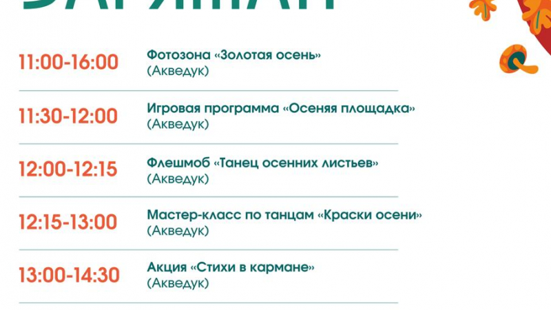 Гости смогут также принять участие в зажигательном флешмобе «Танец осенних листьев» и даже освоить танцевальные движения под руководством опытного хореографа.