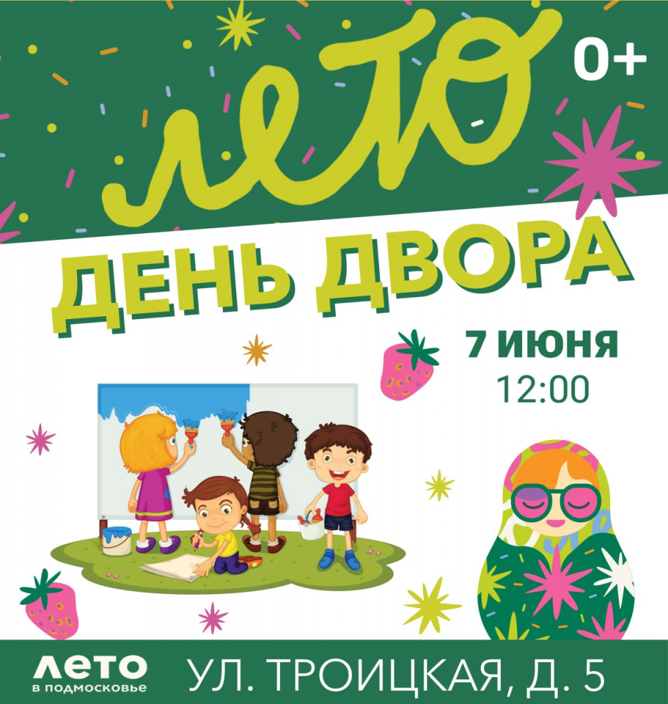 В предстоящие выходные традиционно в Мытищах пройдет День двора на ул. Троицкой, д. 5, где жители смогут не только провести день и в кругу семьи, но и зарядиться позитивными эмоциями.