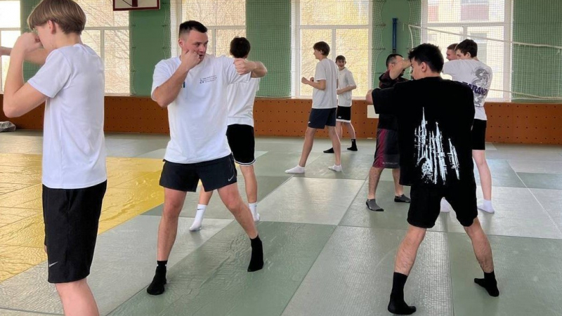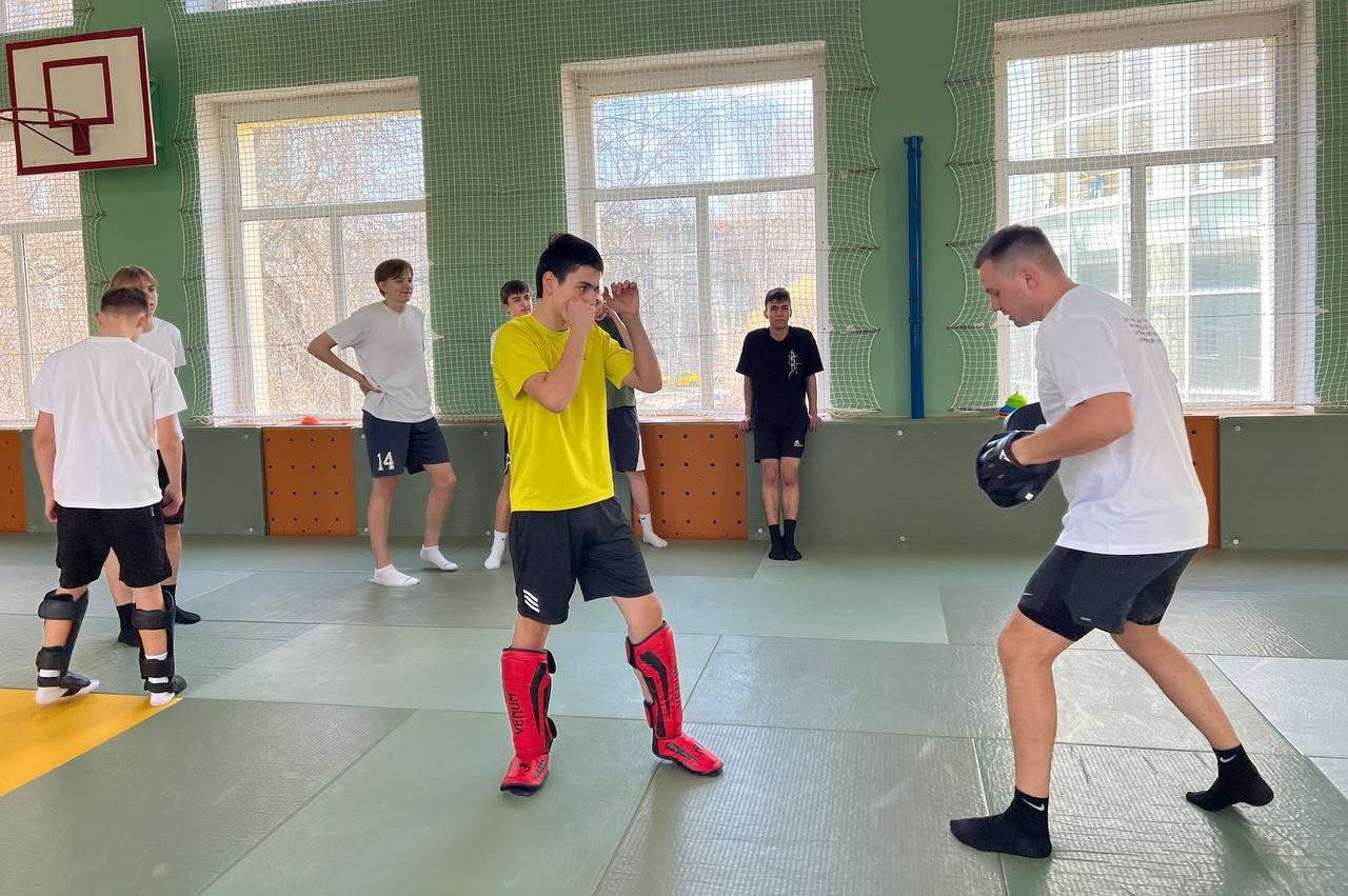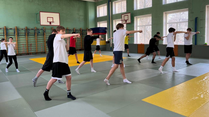 Председатель комиссии по спорту Александр Марков и эксперт-консультант комиссии Артем Кагзванцян провели тренировку, показали и рассказали, как правильно разминаться, наносить базовые удары руками и ногами, делать растяжку, какие упражнения необходимы для выносливости. Школьники остались довольны проведенной тренировкой и выразили желание познакомиться с этим видом спорта более близко уже в специализированном боксерском зале.