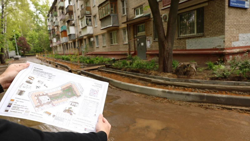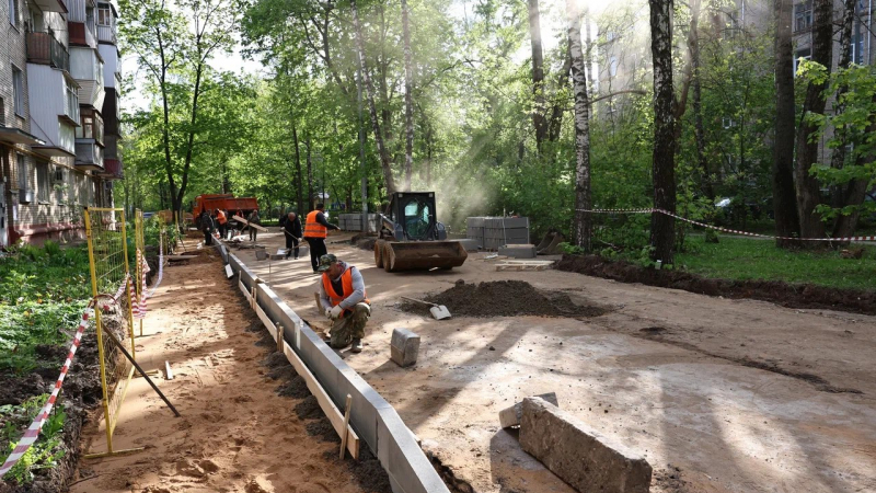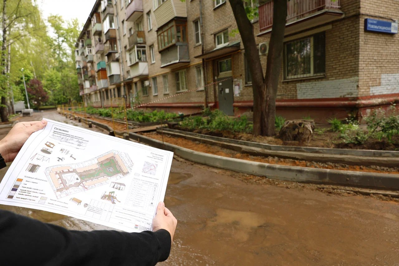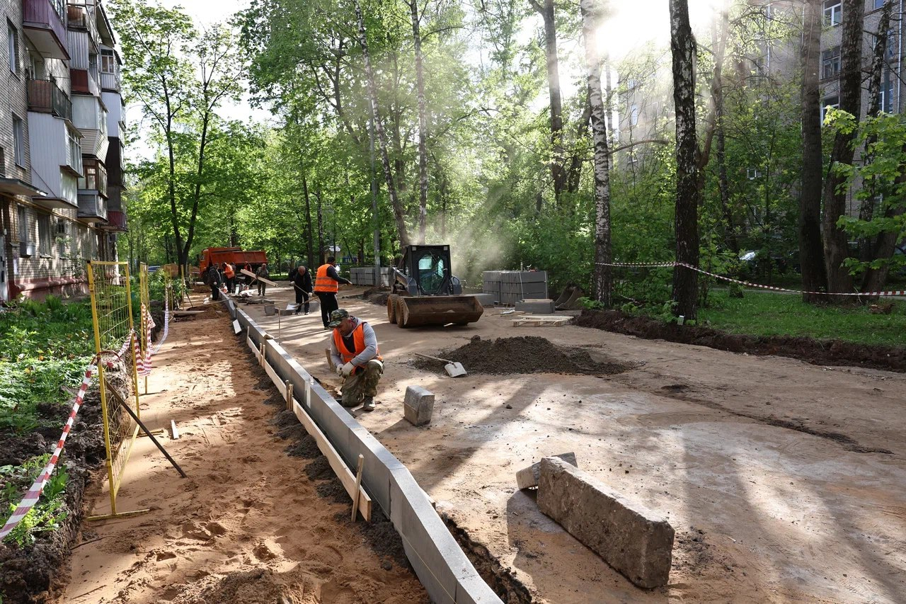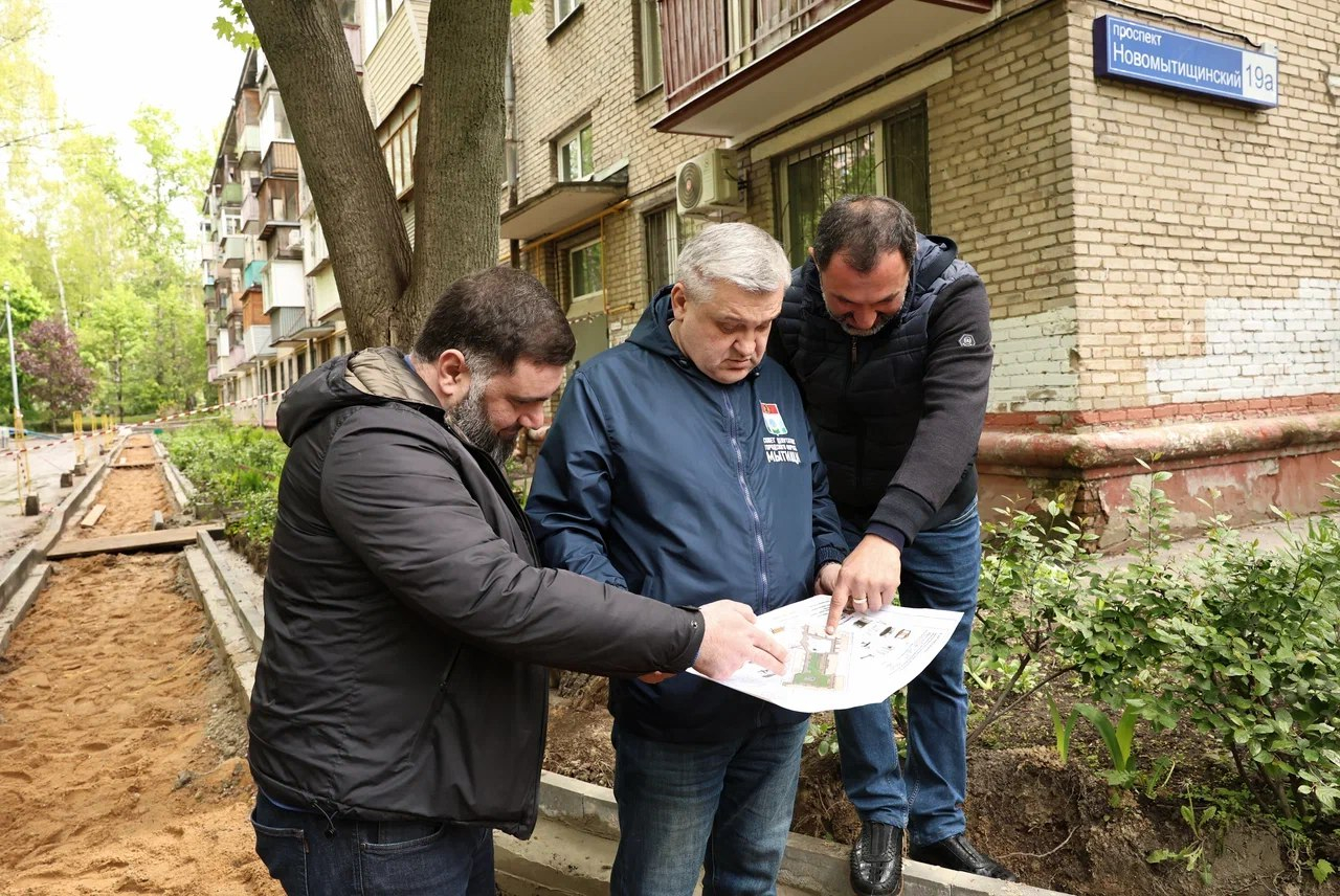 Председатель Совета депутатов округа Андрей Гореликов вместе со специалистами управления благоустройства проверил ход выполнения работ во дворе домов №№ 17, 19, 19А и 21 по Новомытищинскому проспекту.