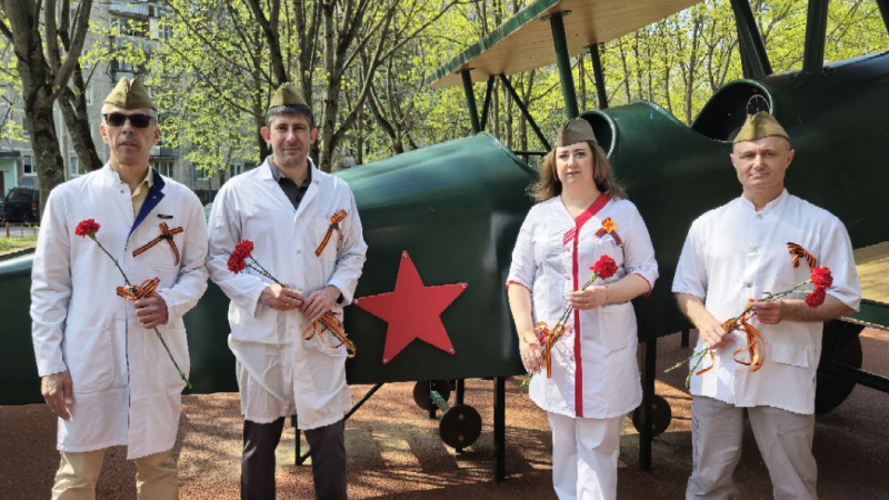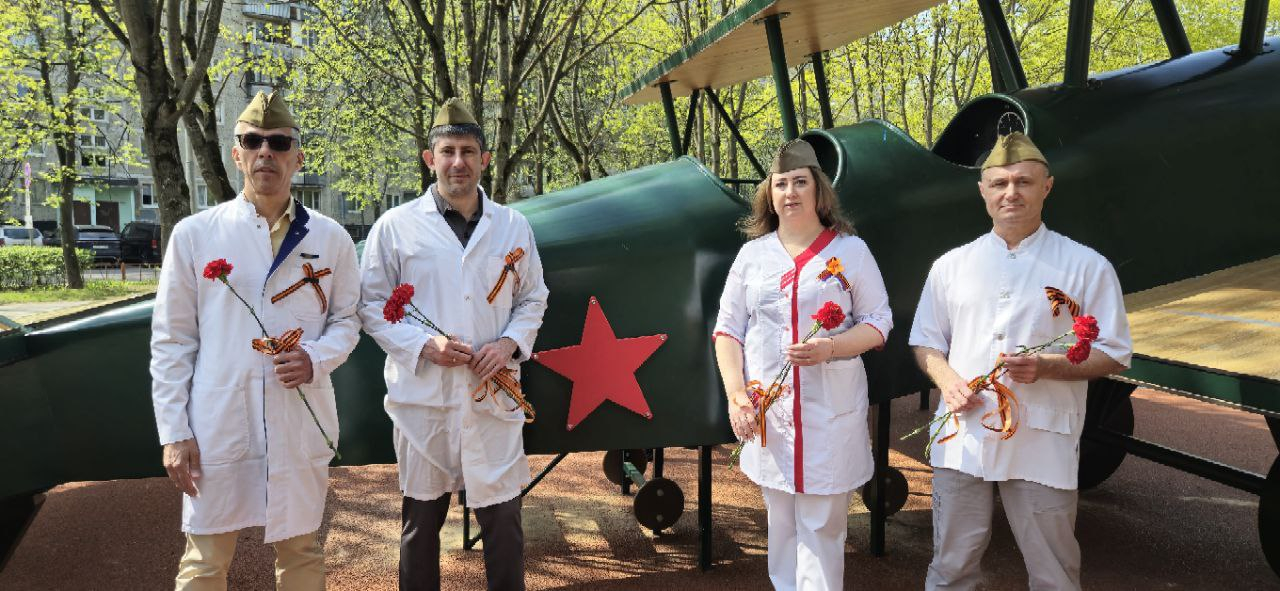 Стали доброй традицией мероприятия, приуроченные к празднованию Дня Победы: поздравления ветеранов, посадка цветов около памятника погибшим на территории больничного городка, акция «Георгиевская ленточка. 80-летие Победы – особенно важная и волнующая дата.