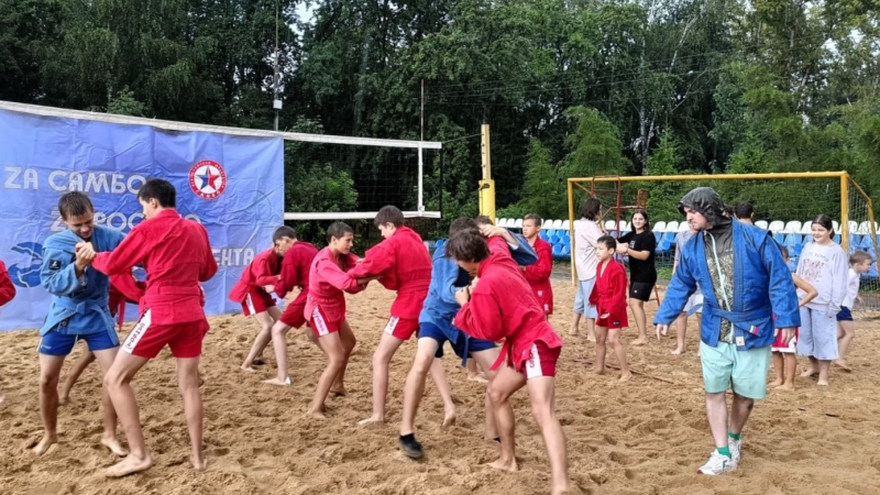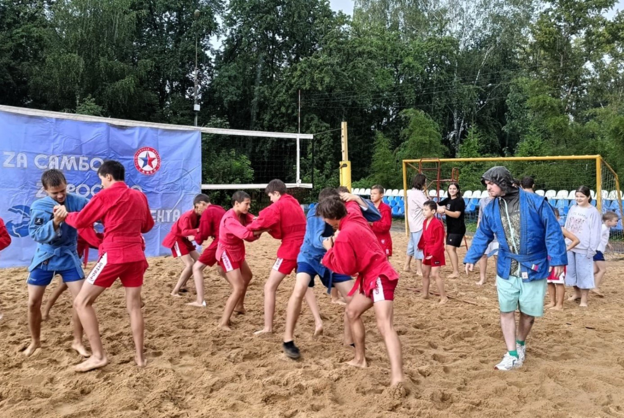 На стадионе пляжных видов спорта мытищинского парка Мира прошел мастер-класс по пляжному самбо, приуроченный к празднованию Дня физкультурника.