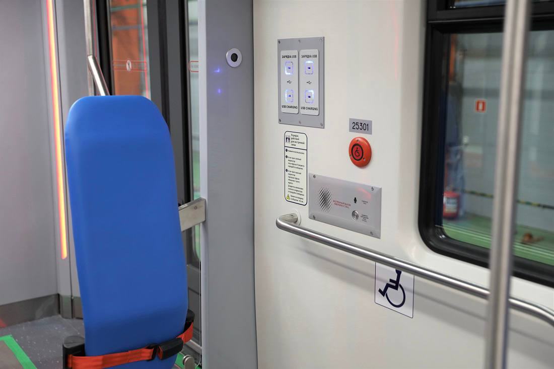 Салон оснащен сплит-системой, ультрафиолетовыми лампами, ЖК-экранами и наддверными ЖК--дисплеями, USB-разъёмами, местами для инвалидов и эргономичными сиденьями. Кабина машиниста оборудована креслом и современным пультом.