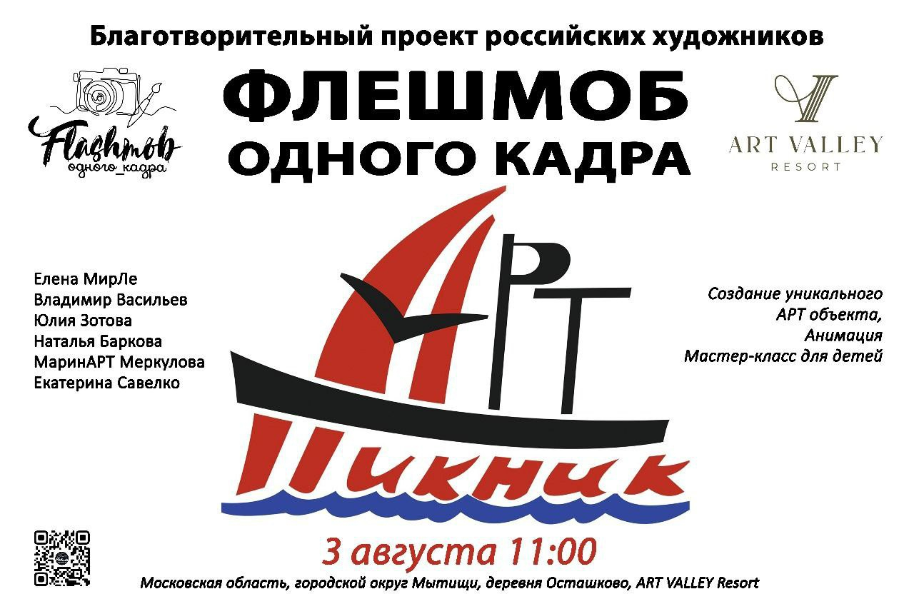 Организатор мероприятия «АРТ-пикник» в Мытищах - благотворительный проект российских художников «Флешмоб одного кадра».