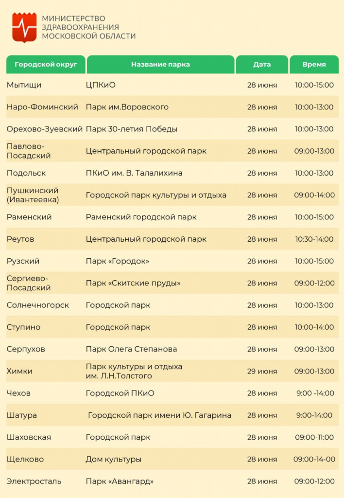 В эти выходные бригады врачей будут работать в 40 парках. Каждый желающий сможет проверить основные показатели здоровья и получить рекомендации от медиков. Приходите и вы!