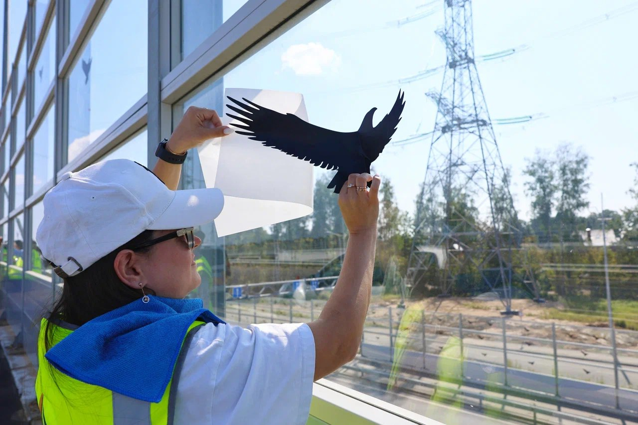 На шумозащитные блоки на трассе Виноградово–Болтино–Тарасовка сотрудники компании застройщика приступили к нанесению наклеек хищных птиц. Такие трафареты необходимы, чтобы защитить пернатых от гибели от столкновений в полете. Всего планируется установить 15 тысяч наклеек.