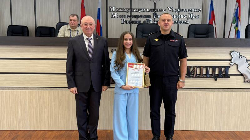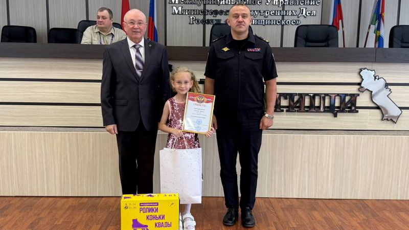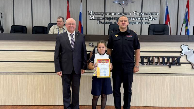 Начальник МУ МВД России «Мытищинское» полковник полиции Николай Жуков и председатель Общественного совета Геннадий Старцев наградили участников этапа Всероссийского конкурса детского творчества «Полицейский Дядя Стёпа».