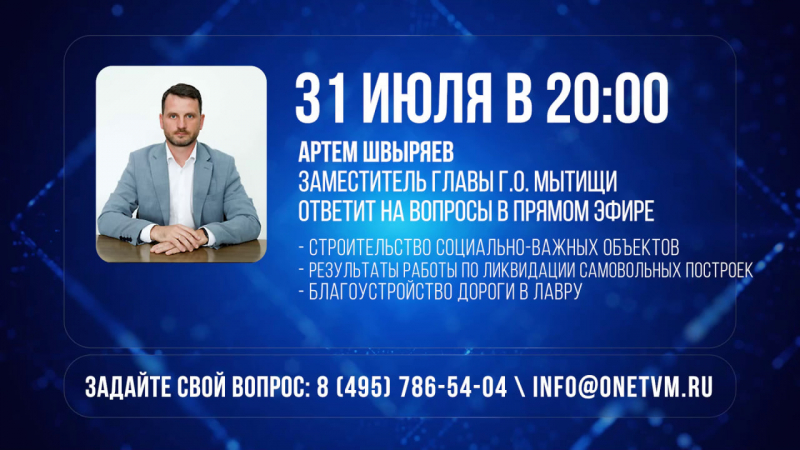 Информационная программа "День" выходит ежедневно в 20.45. Пять раз в неделю корреспонденты программы "День" выходят в эфир, чтобы рассказать о главных событиях, произошедших на территории городского округа Мытищи - первыми! Репортажи с места событий, актуальные интервью, истории мытищинцев, аналитика и специальные репортажи. Мы находим ответы на самые сложные вопросы. У вас есть интересная история и вы хотите о ней рассказать, звоните нам 8 (495) 786-54-04, 8 (495) 786-54-25.