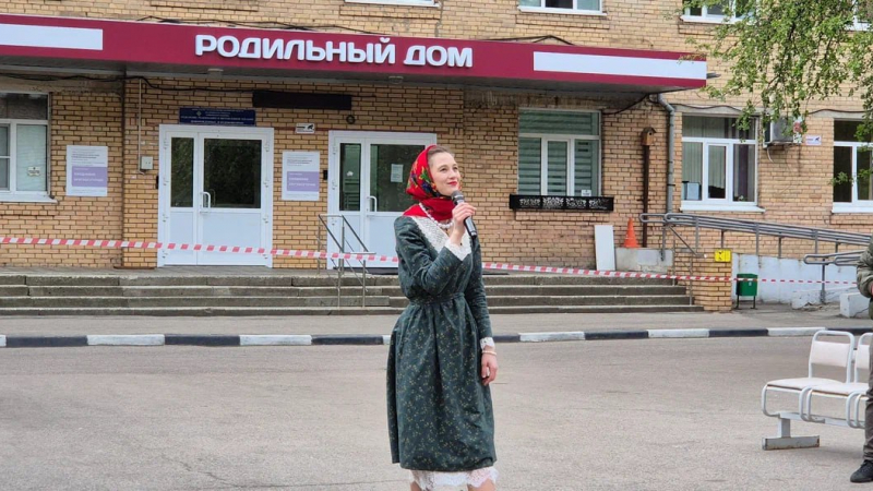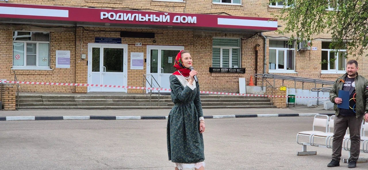 В круглосуточном стационаре не бывает выходных: в праздничные дни в больничных корпусах остаются те, кто восстанавливается после сложных операций и тяжелых травм, молодые мамы с новорожденными, дежурные врачи и медицинские сестры. Площадка между роддомом и хирургическим корпусом превратилась в сцену под открытым небом. Выздоравливающие могли спуститься сюда, чтобы послушать поздравления и песни Победы, а окна больничных палат стали импровизированными ложами зрительного зала.