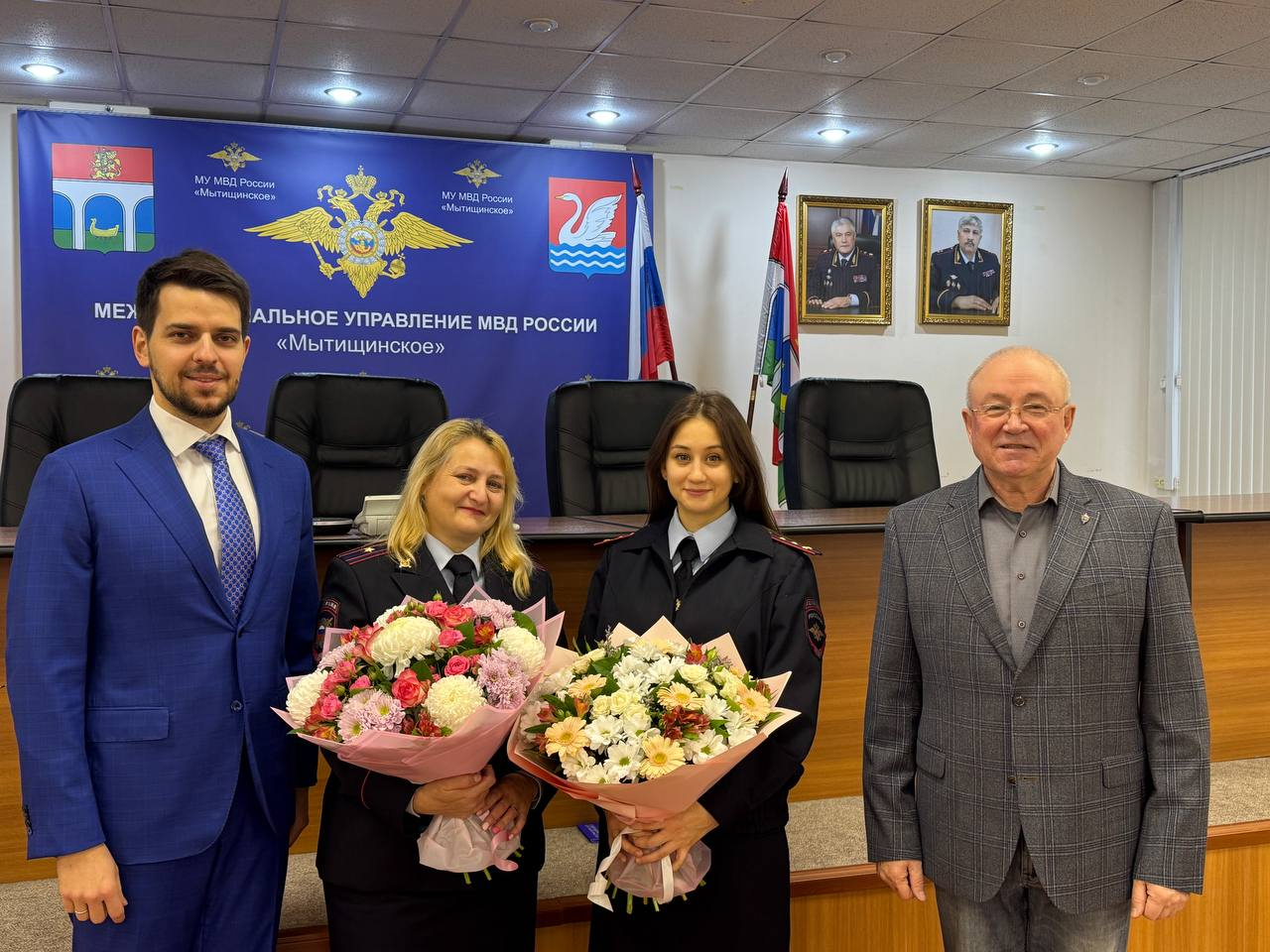 Председатель Общественного совета при МУ МВД России «Мытищинское» Геннадий Старцев и член Совета Альберт Чибухчян поздравили с праздником женщин-полицейских, чьи дочери, также как и их мамы, сейчас работают в полиции.