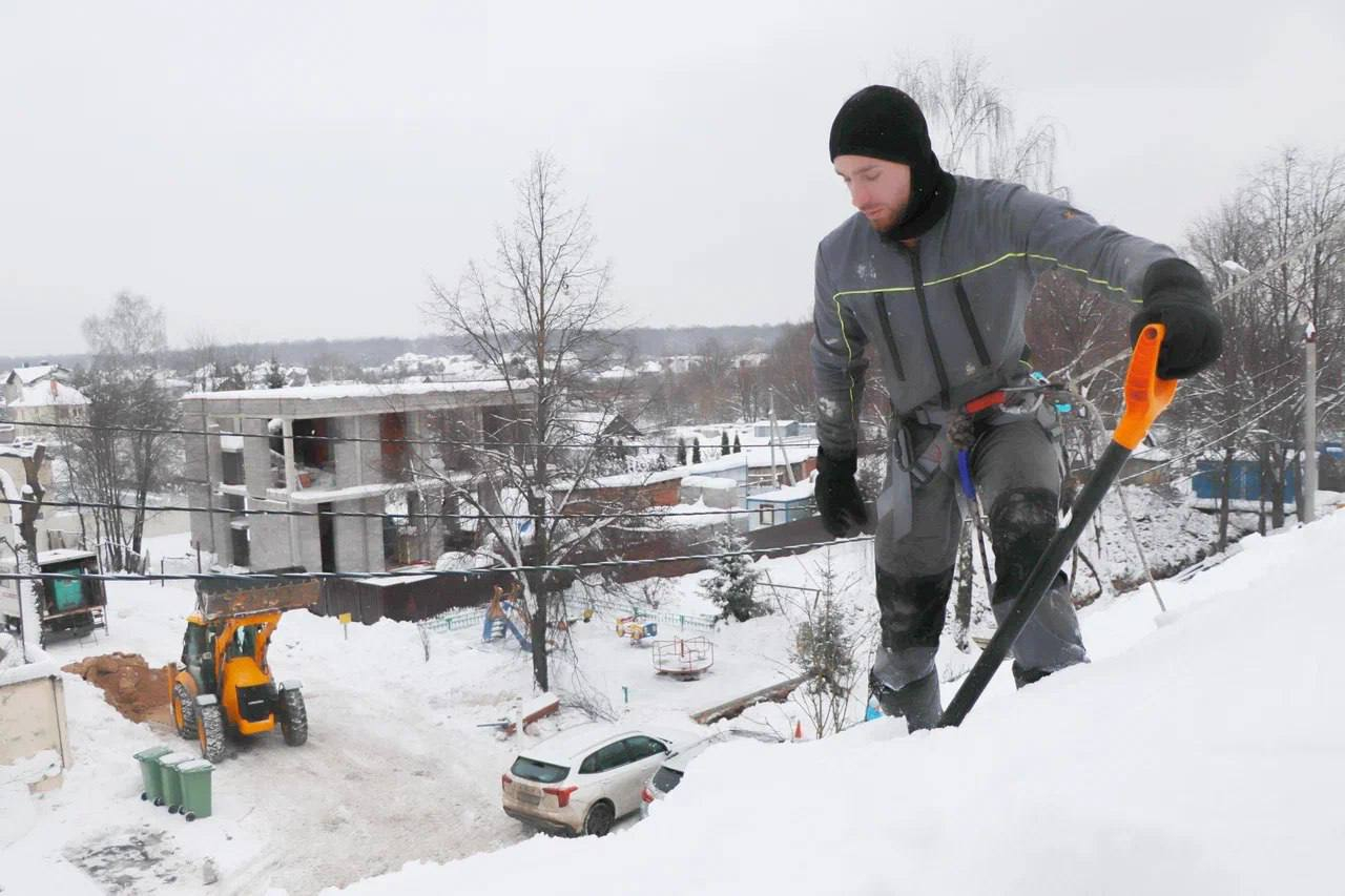 В поселке Вешки городского округа Мытищи проведена масштабная работа по очистке кровель многоквартирных домов от снега и наледи. За один день бригада промышленных альпинистов, состоящая из пяти человек, успешно очистила 11 крыш. Эти крыши имеют скатную конструкцию и не оборудованы ограждениями и снегозадерживающими элементами, что делает их особенно опасными для прохожих и самих работников.