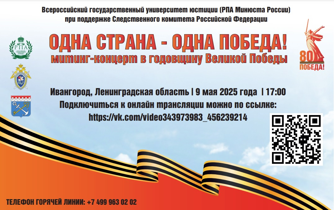 Жители Мытищ смогут посмотреть трансляцию митинга-концерта «Одна страна — одна Победа!» Он пройдет на территории Ленинградской области в Ивангороде в честь годовщины 80-летия Великой победы в Великой Отечественной войне.