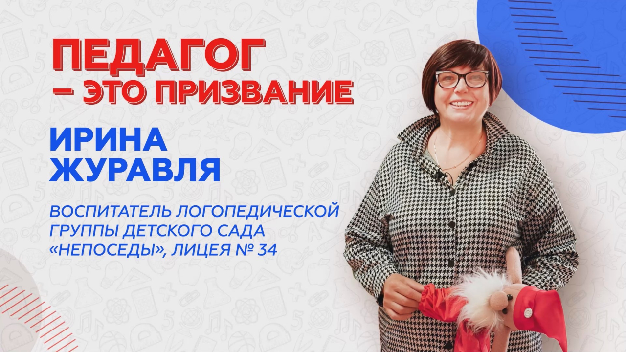 В рубрике «Педагог — это призвание» — воспитатель логопедической группы дошкольного отделения «Непоседы» лицея №34 Ирина Дмитриевна Журавля