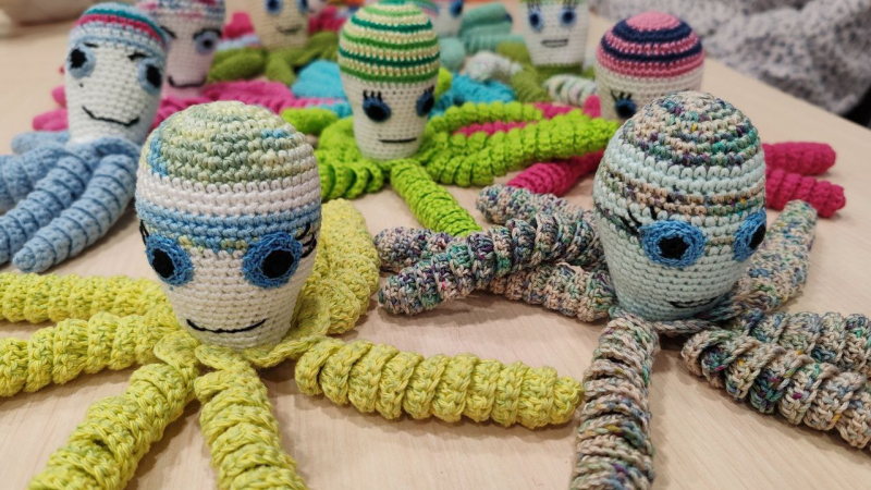 Кроме того, из-под рук трудолюбивых «пчелок» под руководством серебряного волонтера Галины Герасимовой вышло 670 комплектов для недоношенных деток в перинатальные центры Москвы и Подмосковья. А с учетом, что в каждый комплект входят шапочка, носочки, пледик и игрушка-осьминожка, –это 2680 изделий, связанных с душой и любовью.