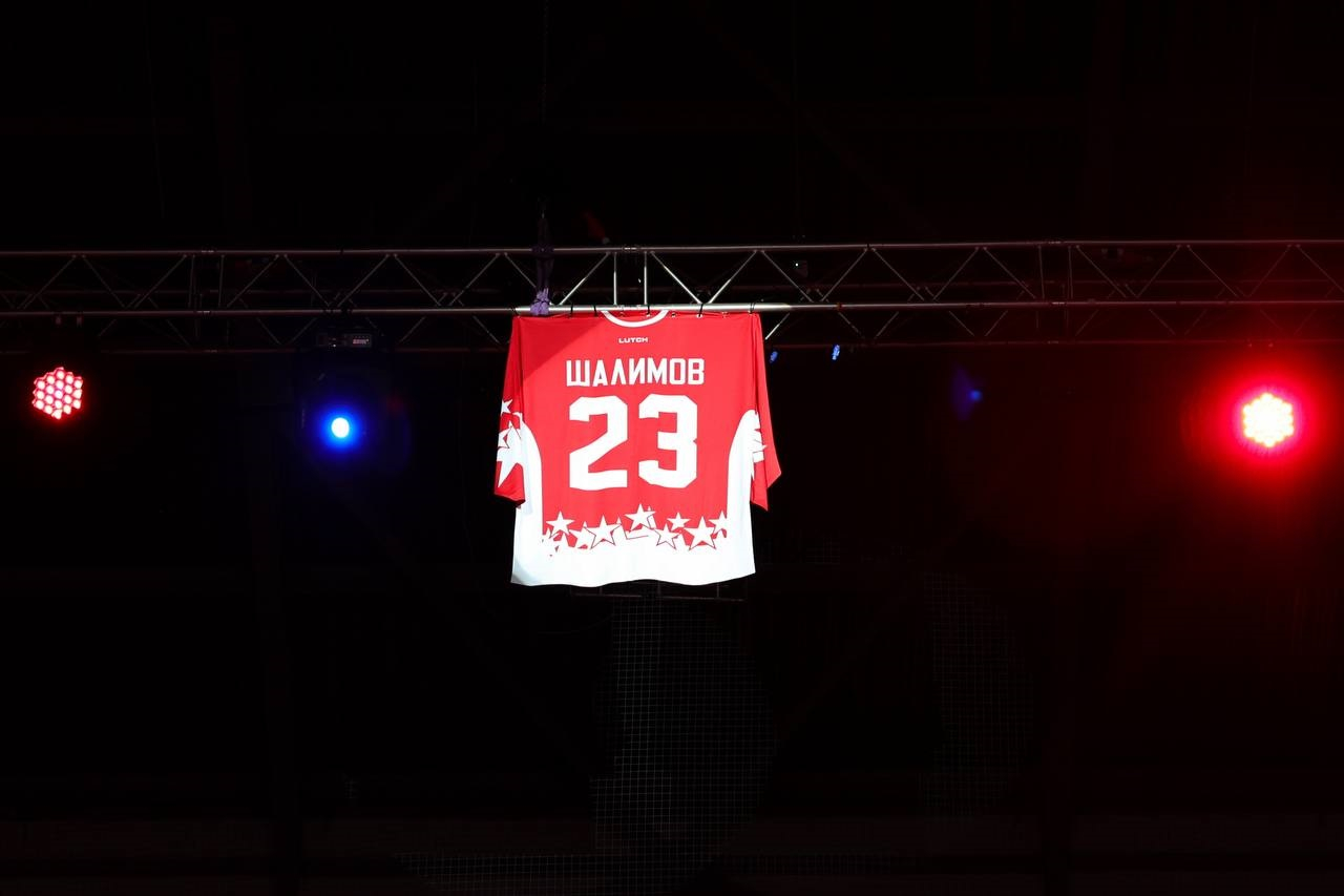 В «Арене Мытищи» им. В.И. Шалимова – событие, которое войдёт в историю городского округа. Именной хоккейный свитер с номером 23 олимпийского чемпиона украсил свод ледового дворца. Легенду советского хоккея Виктора Ивановича, чье имя носит наш комплекс, встретили аплодисментами сотни болельщиков и игроков турнира.