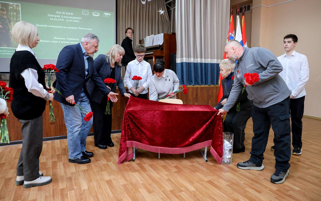 Почтить память нашего земляка пришли его супруга Оксана Владимировна, близкие, руководитель мытищинского отделения Ассоциации СВО Сергей Пудов, а также учащиеся школы.