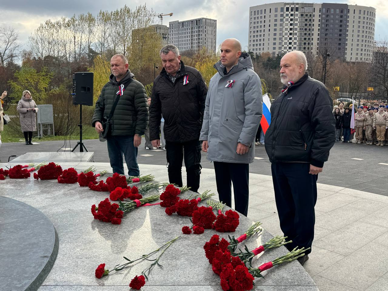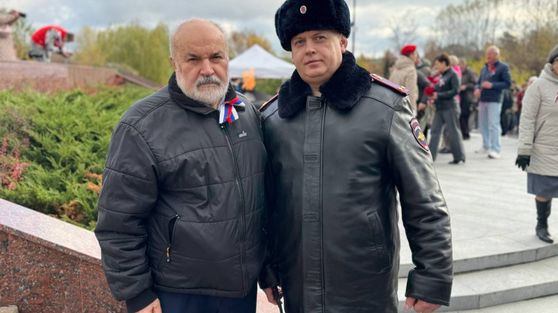 Заместитель начальника полиции МУ МВД России «Мытищинское» подполковник полиции Дмитрий Зюмкин и член Общественного совета при МУ МВД Вячеслав Муравьёв приняли участие в торжественном митинге, посвященном Дню народного единства.